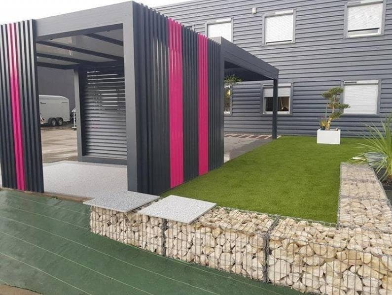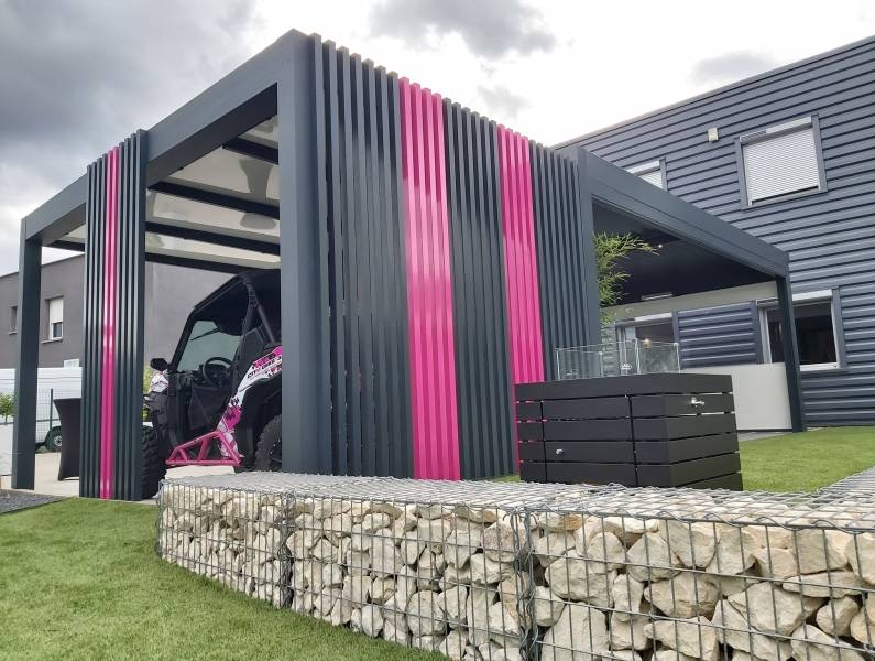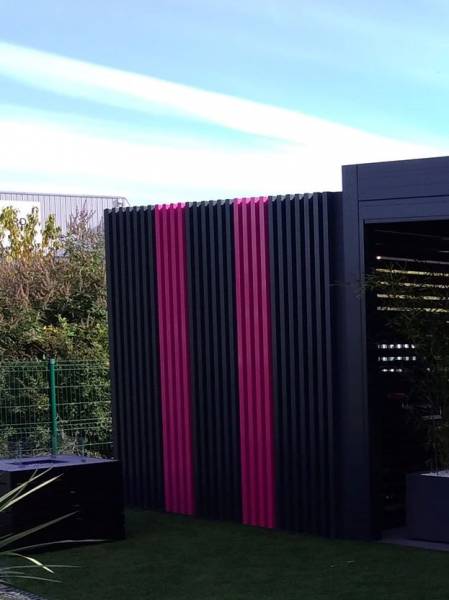 Lames aluminium espacées pour se créer une ambiance non fermée et aérée, adaptable sur nos carports.