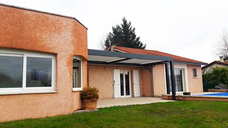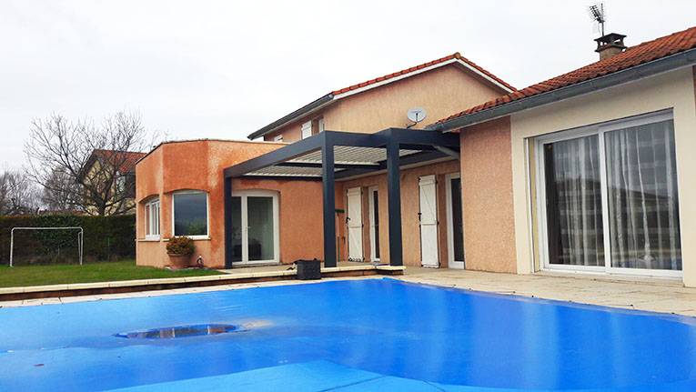 Passion et Design, concessionnaire exclusif des pergolas Solisystème, situé près de Lyon, vous présente ce nouveau projet de pergola bioclimatique sur-mesure, sur la commune de Rancé (01).