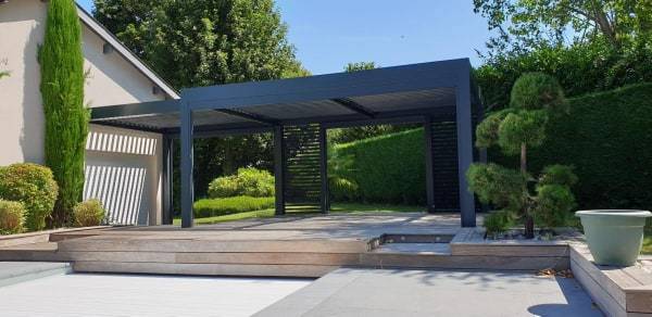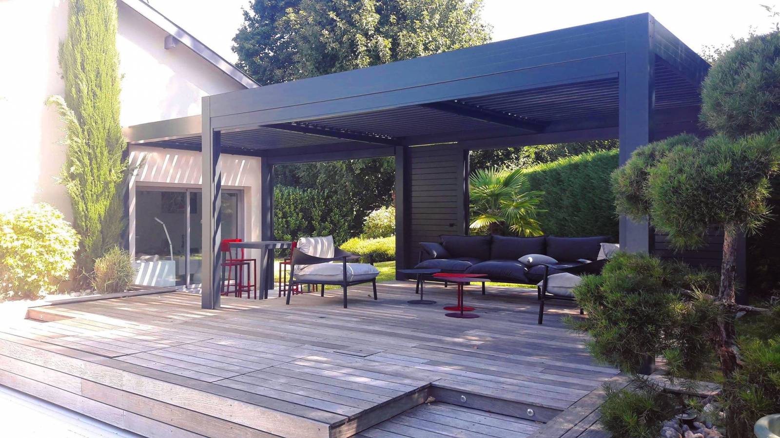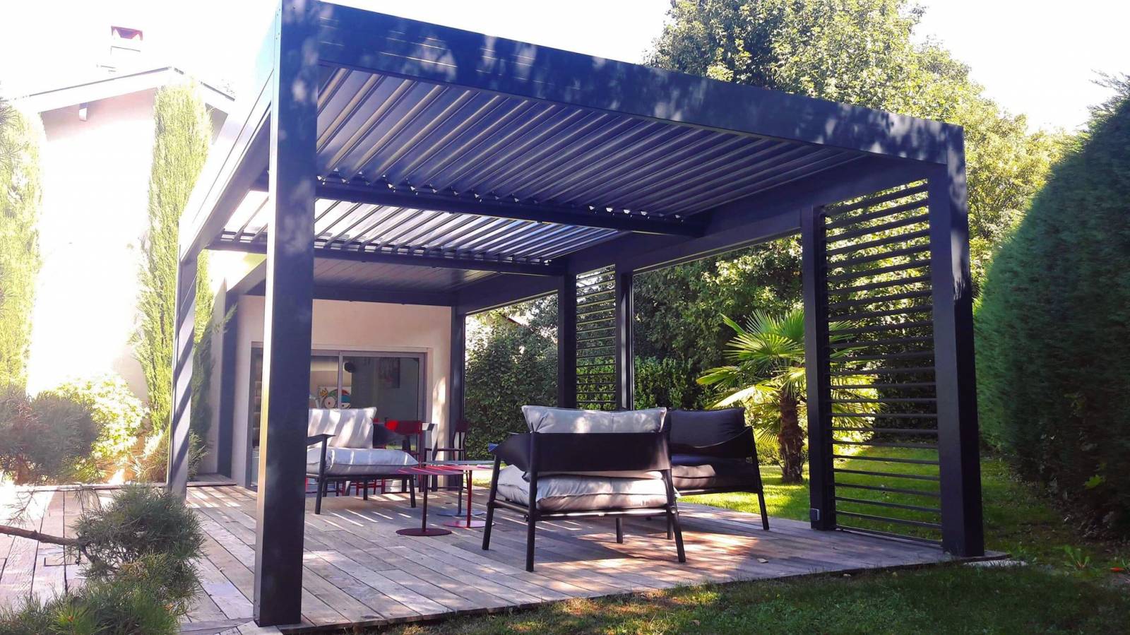 Pergola bioclimatique sur-mesure avec ses accessoires sur la commune de Sainte Foy Les Lyon